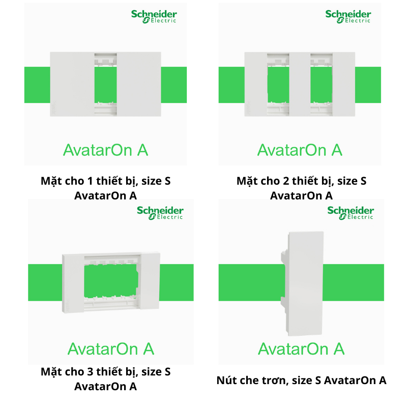 Thay đổi linh hoạt: Các mặt che công tắc ổ cắm AvatarOn A có thể được thay đổi thành mặt che 3 thiết bị size S (có thể cần lắp kèm với phụ kiện mặt che ốc)