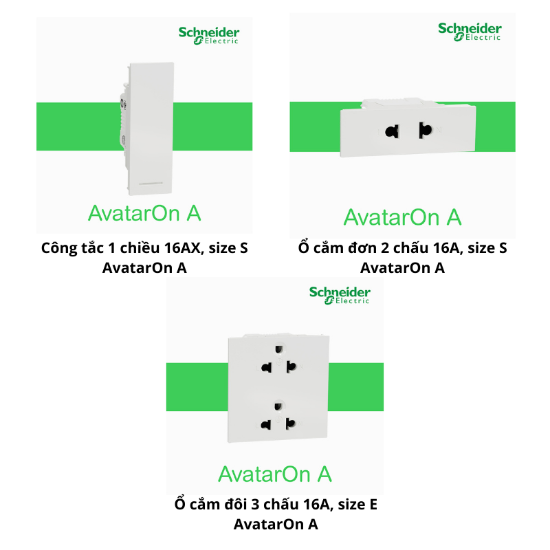 Chuẩn an toàn: Tất cả các ổ cắm AvatarOn A đều tuân thủ tiêu chuẩn quốc tế IEC, đạt chứng nhận sản phẩm thân thiện với môi trường (theo chỉ thị ROHS, Reach, Green Premium)