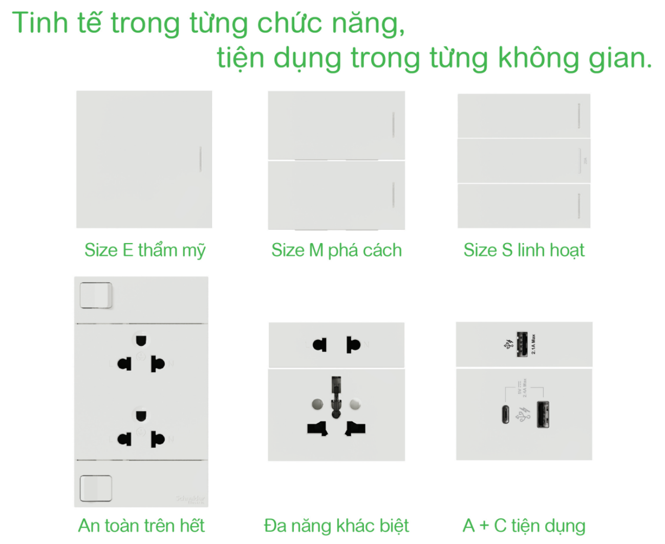 Linh hoạt trong lựa chọn: Công tắc ổ cắm AvatarOn A được thiết kế theo dạng module lắp ghép các mặt hạt, giúp bạn dễ dàng kết hợp công tắc và ổ cắm theo nhu cầu sử dụng
