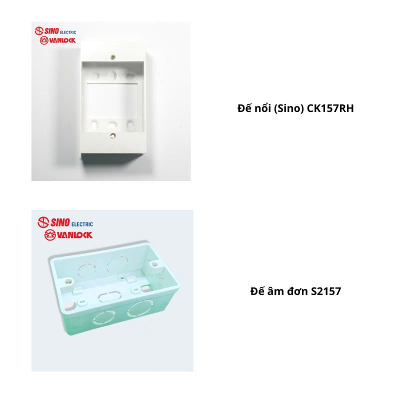 ĐẾ ÂM ĐƠN Sino Vanlock là loại đế nhựa chống cháy dùng để lắp các mặt công tắc, ổ cắm, CB đơn khi thi công điện âm tường.