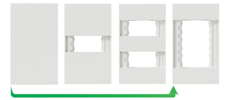- Thay đổi linh hoạt: Các mặt che công tắc ổ cắm AvatarOn A có thể được thay đổi thành mặt che 3 thiết bị size S (có thể cần lắp kèm với phụ kiện mặt che ốc)