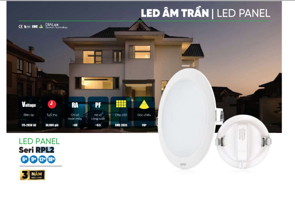Đèn LED Panel âm trần nhựa mặt tròn 18W 3 chế độ màu MPE – RPL2-18/3C